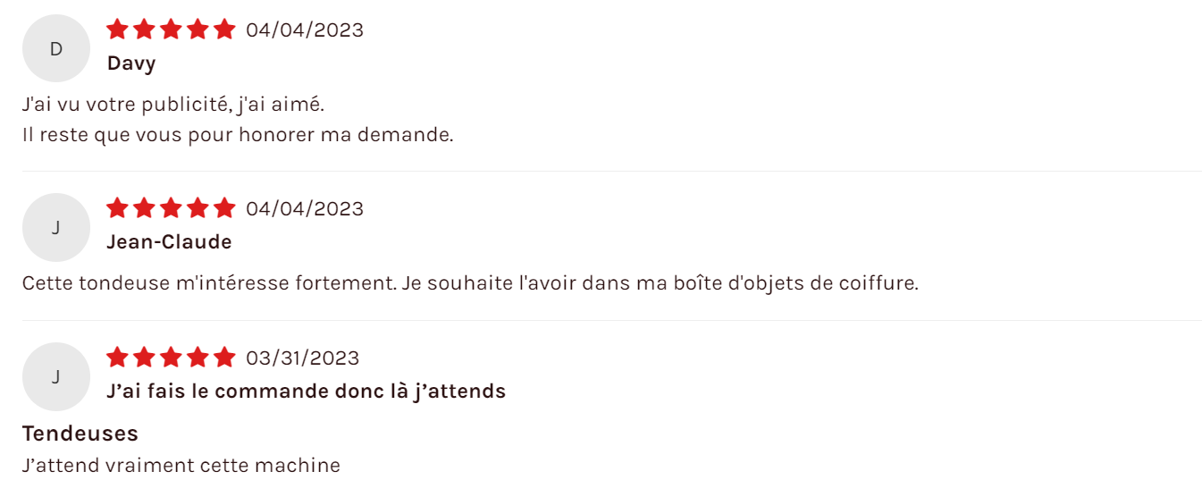 Quelques uns de nos clients à propos de la tondeuse DARLING 👇🏾